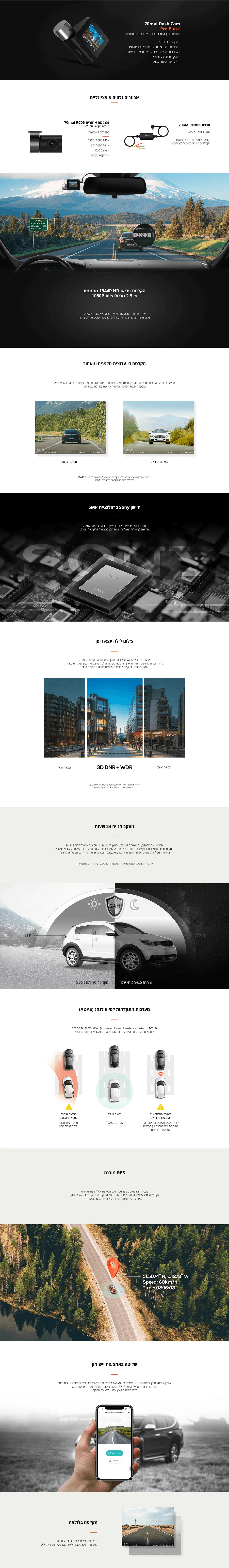 מערכת סיוע מורחב ומתקדם לנהג (ADAS) – סטייה מנתיב, רכבים בתנועה, התראת קירבה לרכב מקדימה חיישן 5MPixel לצילום מעולה ויציב ביום ובלילה באמצעות כיוון אוטומטי של רמת התאורה לפני ההקלטה, מנגנון הפחתת רעש ב-3D וטכנולוגיית WDR לאיזון החשיפה
